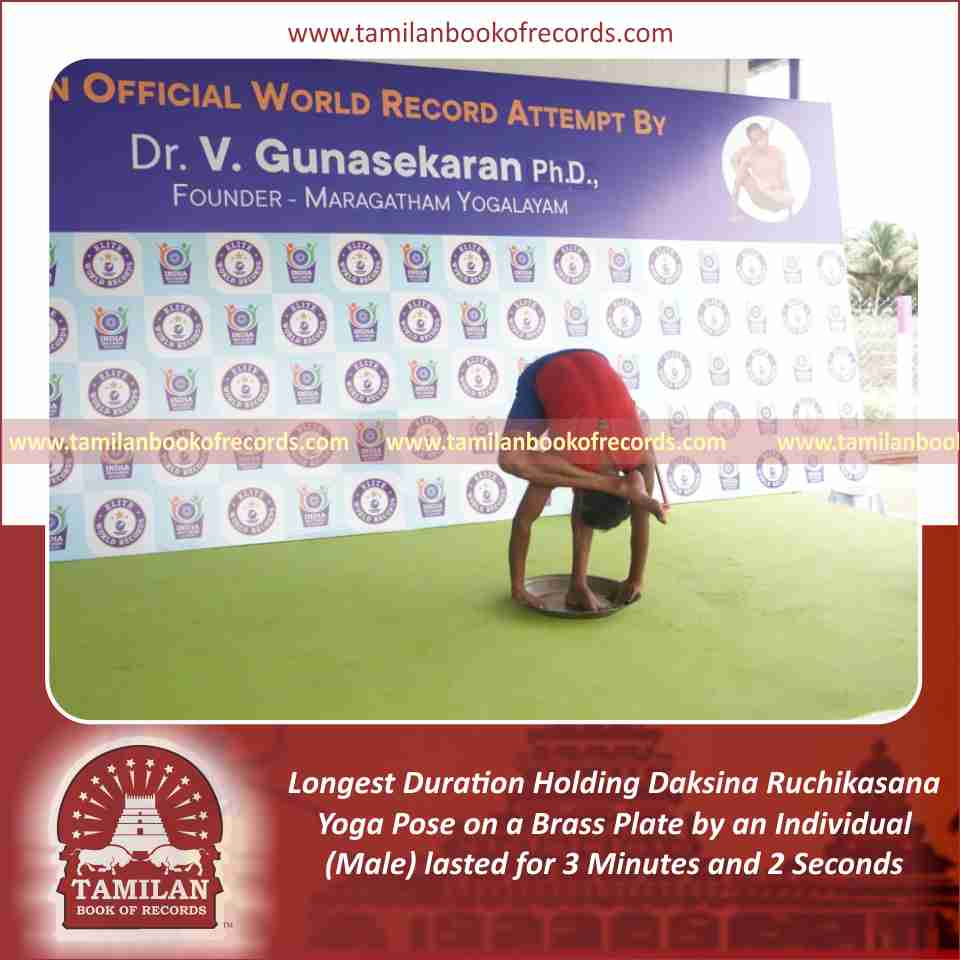 Longest Duration Holding Daksina Ruchikasana Yoga Pose on a Brass Plate by an Individual (Male)