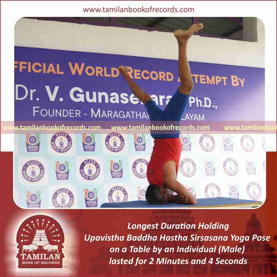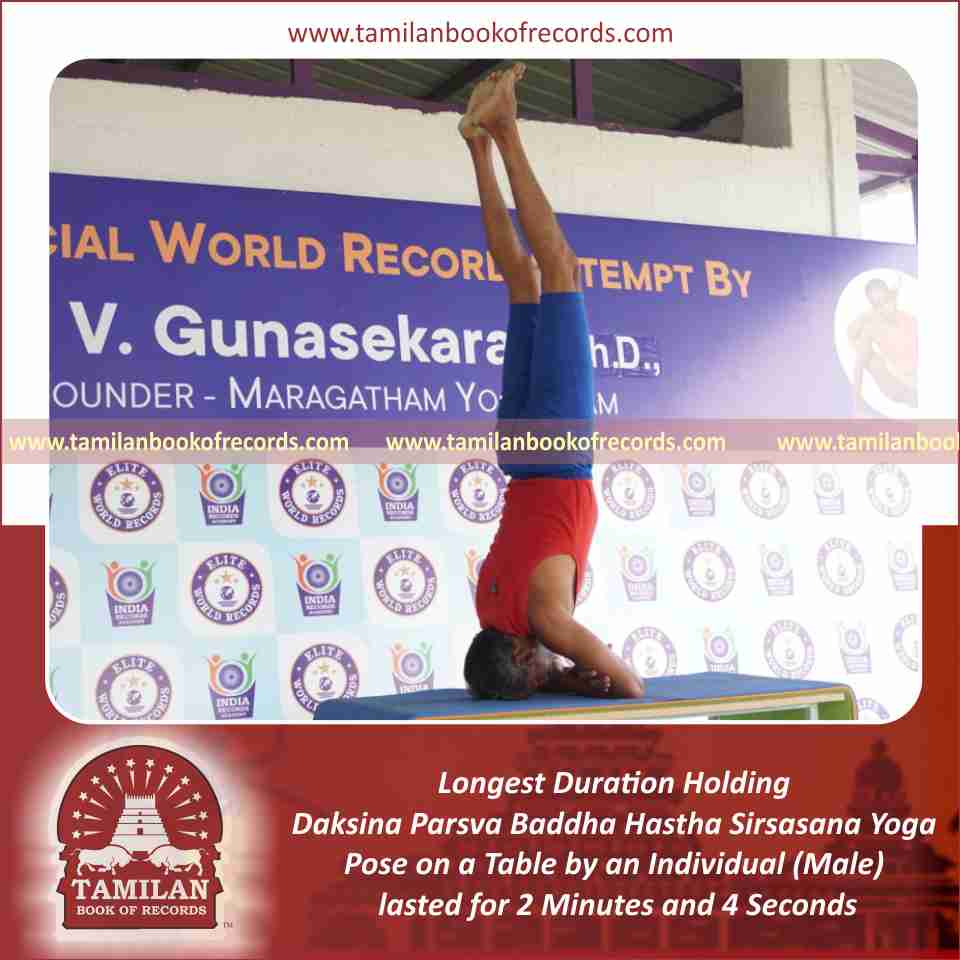 Longest Duration Holding Daksina Parsva Baddha Hastha Sirsasana Yoga Pose on a Table by an Individual (Male)