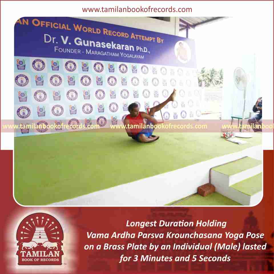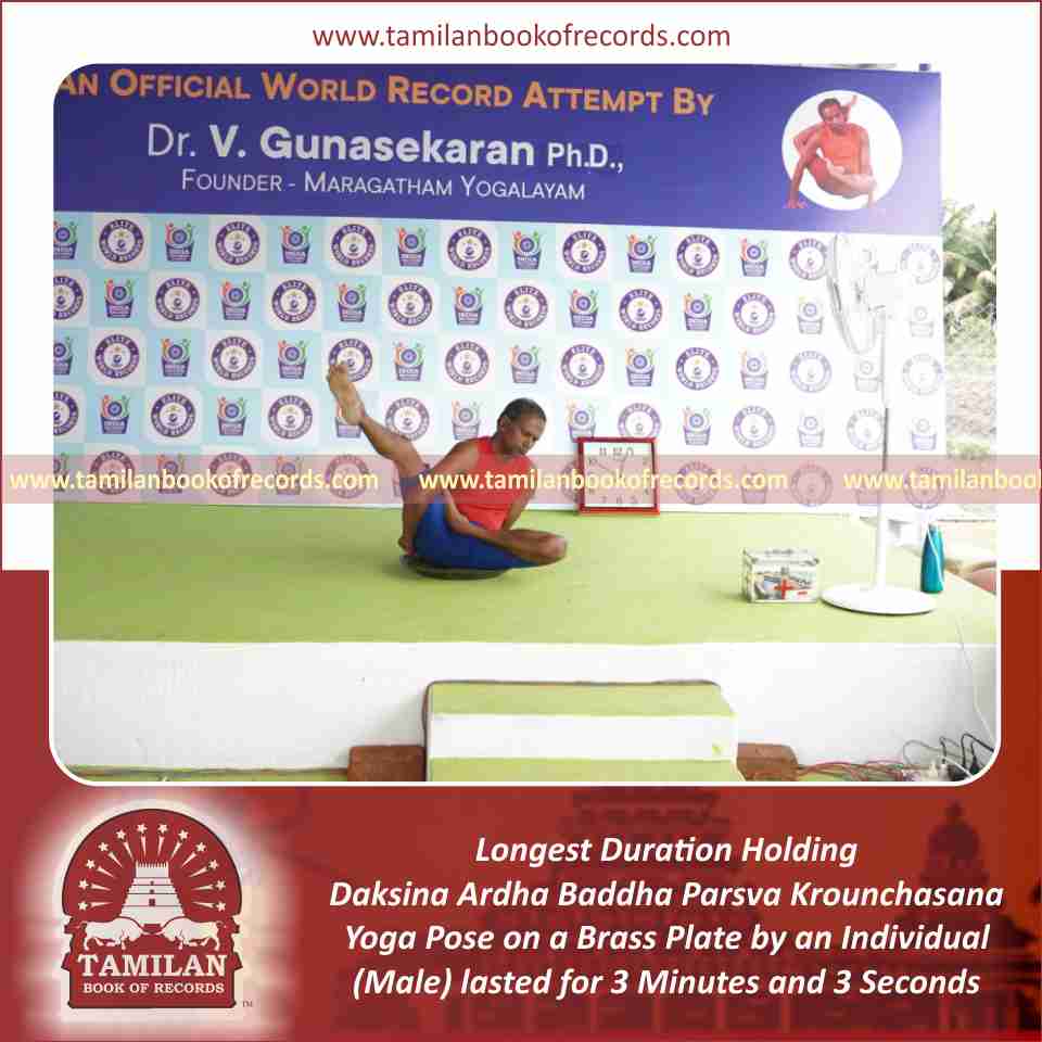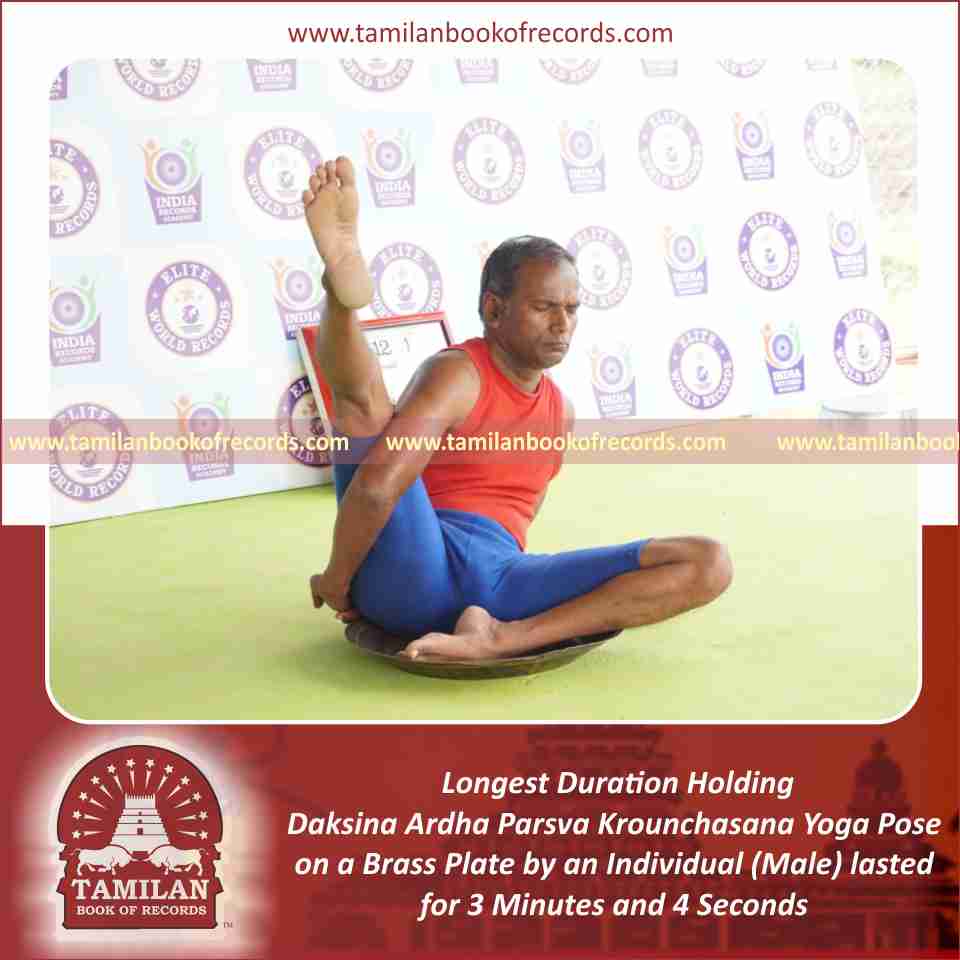 Longest Duration Holding Daksina Ardha Parsva Krounchasana Yoga Pose on a Brass Plate by an Individual (Male)