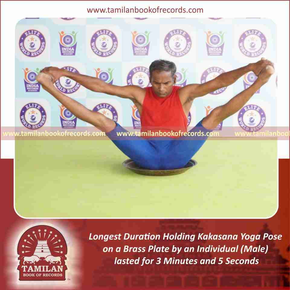 Longest Duration Holding Kakasana Yoga Pose on a Brass Plate by an Individual (Male)