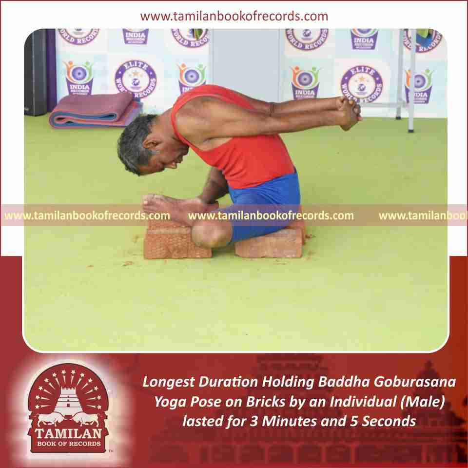 Longest Duration Holding Baddha Goburasana Yoga Pose on Bricks by an Individual (Male)