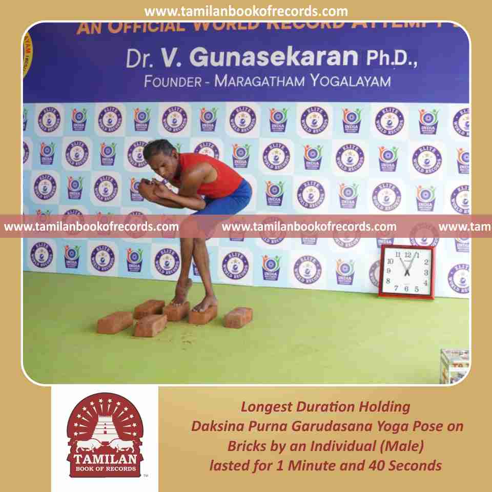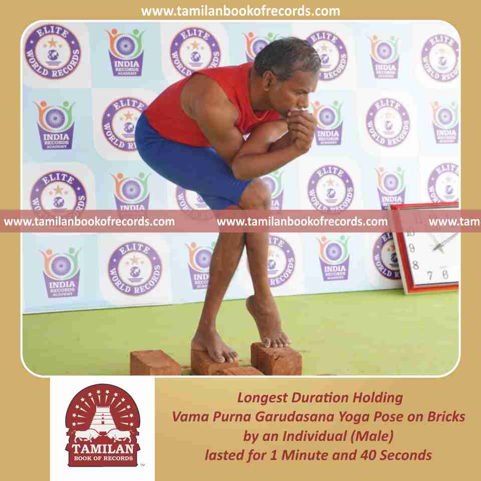 Longest Duration Holding Vama Purna Garudasana Yoga Pose on Bricks by an Individual (Male)