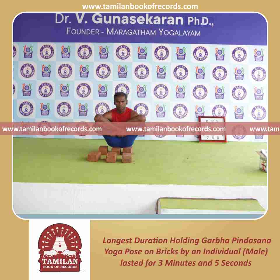 Longest Duration Holding Garbha Pindasana Yoga Pose on Bricks by an Individual (Male)