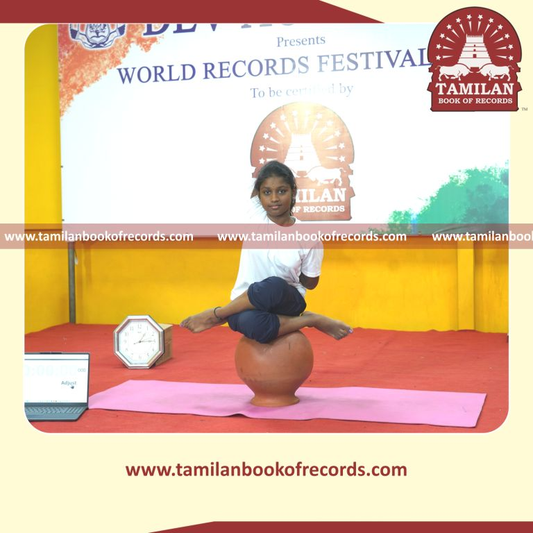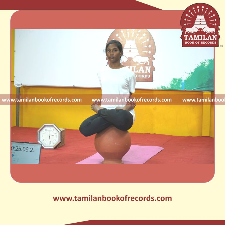 Longest Duration Holding the Baddha Padmasana Yoga Pose on a Inverted Pot by an Individual (Minor – Female)