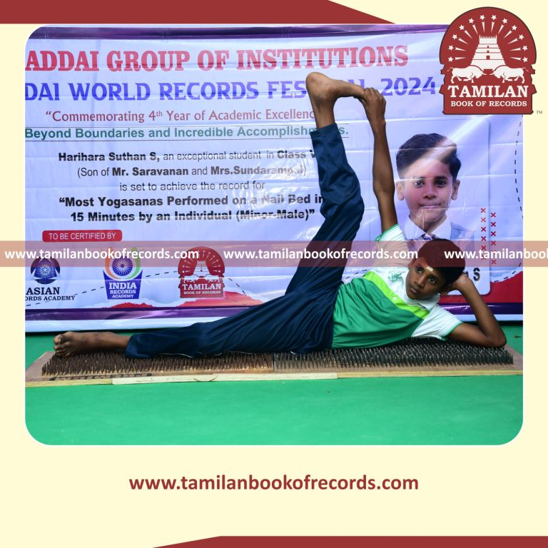 Greatest Number of Yogasanas Performed on a Nail Bed in 15 Minutes by an Individual (Minor-Male)