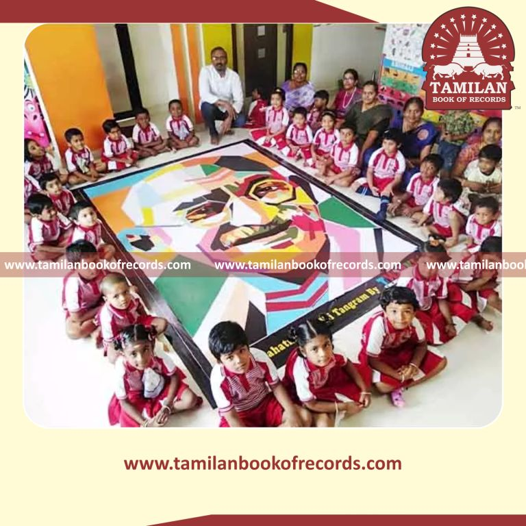 Largest Mahatama Gandhi Tangram Puzzle Assembled by a Team of Kindergarten Kids